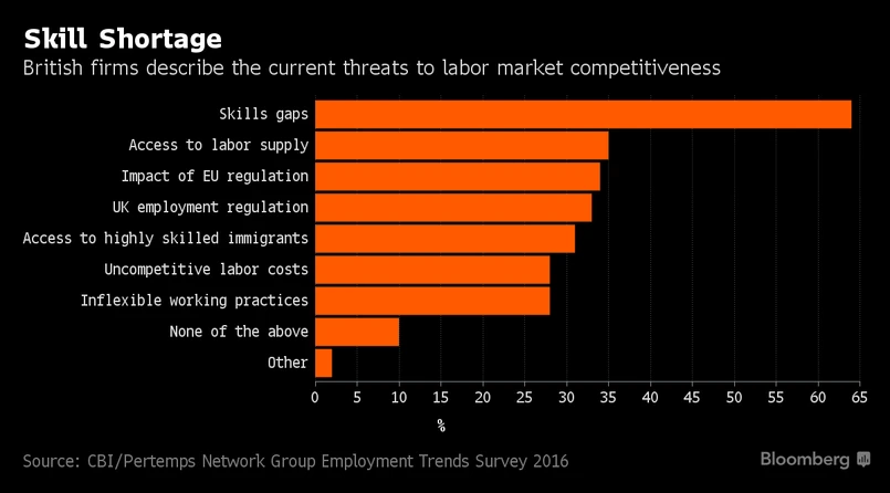 Z badania wynika, że największym zagrożeniem dla konkurencyjności brytyjskich firm po Brexicie jest niedobór wykwalifikowanych specjalistów, brak dostępu do siły roboczej, wpływ unijnych regulacji, wpływ brytyjskich regulacji ds. zatrudnienia oraz dostęp do wysoko wykwalifikowanych imigrantów. Niezwykle istotne dla wielu branż, w tym usług, które odpowiadają za około 80 proc. całkowitego zatrudnienia w Wielkiej Brytanii, będzie więc utrzymanie na dotychczasowym poziomie podaży pracowników z zagranicy.
