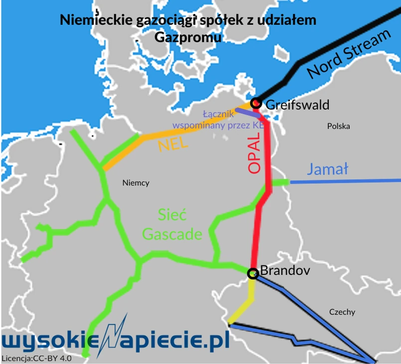 Gazociąg OPAL jest w 20 proc. współwłasnością E.ON-Ruhrgas i w 80 proc. WIGA - spółki Gazpromu i BASF, w której Gazprom ma dominującą pozycję. Zarówno ograniczenia w wykorzystaniu przez Rosjan gazociągu, jak i ich zmiany dotyczą wyłącznie części należącej do WIGA. Pod koniec października 2016 r. KE poinformowała, że na wniosek niemieckiego regulatora BNetzA zgodziła się udostępnić Rosjanom znacznie większą przepustowość niż obowiązujące od początku istnienia gazociągu 50 proc.