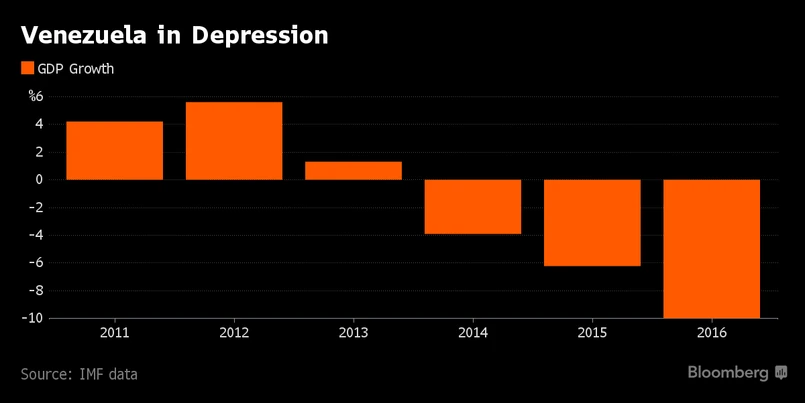 Według MFW skala zapaści nie jest aż tak wielka. Gospodarki Syrii i Libii skurczyły się w okresie wojen domowych o połowę. Tragizm sytuacji dostrzega już jednak nawet prezydent Nicolas Maduro, który powiedział, że „2016 rok był najcięższy, najdłuższy i najtrudniejszy ze wszystkich, z jakim się zmagaliśmy”.