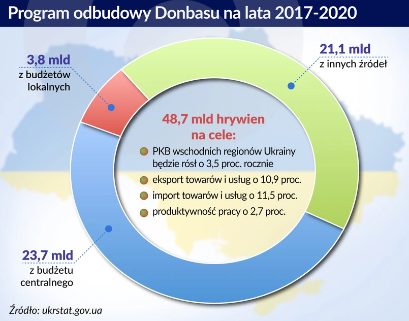 Ministerstwo oczekuje, że w wyniku realizacji programu PKB wschodnich regionów Ukrainy będzie wzrastał o 3,5 proc. rocznie, eksport towarów i usług o 10,9 proc., import towarów i usług o 11,5 proc. a produktywność pracy o 2,7 proc.
