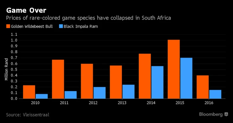 Załamanie na rynku oznacza koniec czteroletniego okresu gwałtownego wzrostu cen w RPA. Doprowadził on do tego, że niektóre gatunki dzikich zwierząt były hodowane specjalnie dla większego poroża albo kolorowej sierści. Praktyka ta była krytykowana przez ekologów a nawet niektórych myśliwych, którzy uznawali ją za nienaturalną ingerencję w pulę genową zwierząt.
