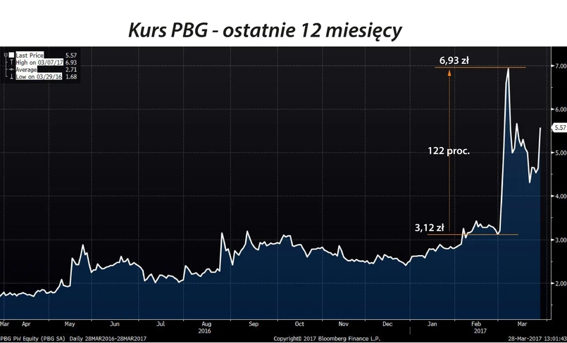 PBG odnotowało 838,73 mln zł skonsolidowanego zysku netto przypisanego akcjonariuszom jednostki dominującej w 2016 r. wobec 177,58 mln zł straty rok wcześniej, podała spółka w raporcie. Rynek natychmiast zareagował na tak dobre wyniki. Kurs akcji spółki na GPW poszybował w górę o ok. 22 proc.