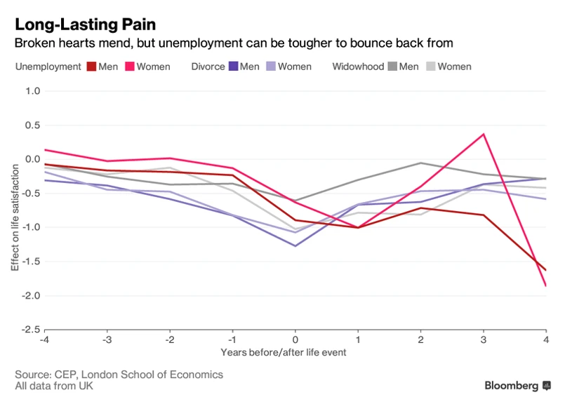 Utrata zatrudnienia jest potężnym ciosem, który ma większy wpływ na spadek zadowolenia z życia, niż rozwód albo śmierć współmałżonka – to główny wniosek pochodzący z przeglądu badań przeprowadzonego przez University of East Anglia oraz What Works Center for Wellbeing (niezależnej instytucji ustanowionej przez brytyjski rząd).