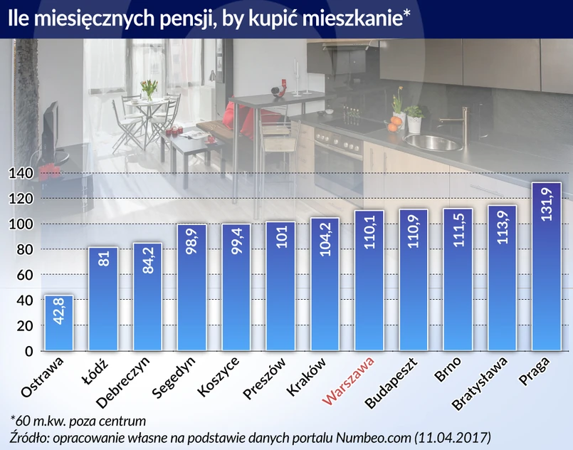 Ile miesięcznych pensji netto należy przeznaczyć na kupno mieszkania w różnych miastach? Przyjmijmy, że to 3-pokojowe mieszkanie o powierzchni 60 metrów kw., poza centrum.W Ostrawie na kupno mieszkania starczą niecałe 43 pensje, podczas gdy w Pradze potrzeba ich niemal 132. Mieszkaniec Ostrawy musi więc pracować trzy razy krócej na mieszkanie niż prażanin.