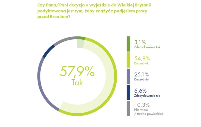 "Ogromny wpływ na taki wynik ma Brexit. W najnowszej edycji raportu 'Migracje Zarobkowe Polaków' zapytaliśmy, czy wyjście Wielkiej Brytanii z Unii Europejskiej determinuje właśnie taki kierunek emigracji - 58 proc. badanych odpowiedziało, że tak. Wyraźnie widać zatem, że potencjalni emigranci Brexit wolą zastać na Wyspach niż w Polsce" - skomentował prezes Maciej Witucki, cytowany w komunikacie.