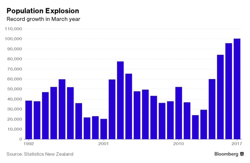 Masowa imigracja wspiera wzrost gospodarczy, jest jednak problemem dla infrastruktury w takich miastach jak Auckland. Największa metropolia w kraju, w której żyje jedna trzecia całej populacji (liczącej 4,8 mln) doświadczyła wzrostu średniej ceny mieszkań do poziomu powyżej 683 tys. dol. Problemem są też coraz bardziej dokuczliwe uliczne korki.