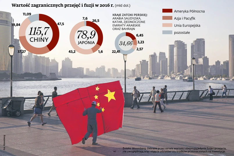 Łącznie biznes z Państwa Środka według serwisu Bloomberg zaangażował się w ubiegłym roku w przejęcia o wartości prawie 250 mld dol. Największą i najgłośniejszą transakcją było przejęcie przez China National Chemical Corporation (której współwłaścicielem jest państwo) szwajcarskiego giganta z branży agrochemicznej (nawozy, środki ochrony roślin, nasiona), firmę Syngenta. W wyniku przejęcia powstanie podmiot o globalnej sile rażenia, więc transakcja musi zostać zaakceptowana przez nadzory antymonopolowe w kilku krajach. Dopiero miesiąc temu zgodę na przejęcie wyraził regulator z USA.