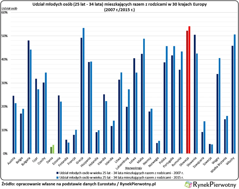 Negatywne zmiany odnotowano w większości analizowanych państw Europy. Wyniki dotyczące Polski są niepokojące, ponieważ nasz kraj całkiem dobrze poradził sobie ze skutkami globalnego kryzysu. Dane Eurostatu niestety wskazują, że relatywnie dobre wyniki gospodarcze w latach 2007 - 2015, nie przełożyły się na poprawę sytuacji mieszkaniowej młodych ludzi.