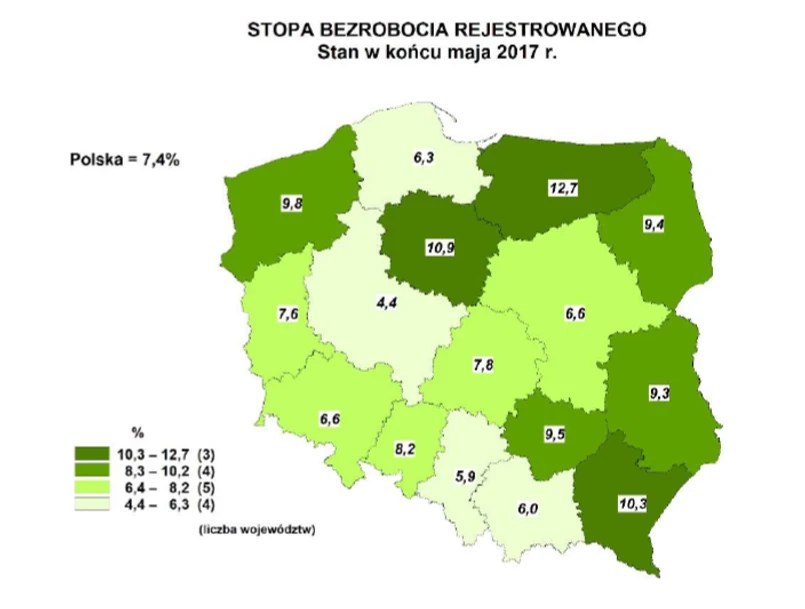 Wcześniej Ministerstwo Rodziny, Pracy i Polityki Społecznej (MRPiPS) podało, powołując się na dane z urzędów pracy, że stopa bezrobocia rejestrowanego wyniosła 7,5 proc. w maju 2017 r., czyli spadła o 0,2 pkt proc. wobec poprzedniego miesiąca. Resort podkreślił, że tak niskiego bezrobocia w maju nie było od 26 lat.