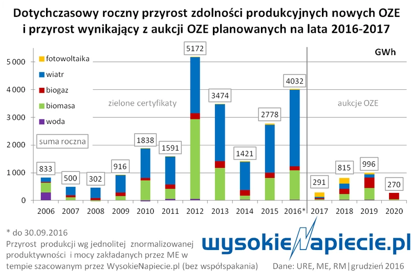 Kolejne zmiany na razie nie sprzyjają szybkiemu rozwojowi ekoelektrowni. Od roku w Polsce niemal zupełnie brakuje inwestycji w tym segmencie. Projekty, które wygrały aukcje, jak instalacja w Olecku, stanowią niewielki odsetek projektów, które były realizowane w Polsce jeszcze 2-3 lata temu. Wówczas co roku oddawano inwestycje o łącznych mocach blisko 1000 MW. Od stycznia do maja produkcja „zielonej” energii wzrosła o niespełna 2% i w dużej mierze dzięki lepszym warunkom pracy istniejących od lat elektrowni wodnych. W tym czasie kolejny rok z rzędu wrosła za to konsumpcja energii. W efekcie w pierwszym kwartale tego roku udział ekologicznych elektrowni w krajowej produkcji skurczył się do niespełna 13,5%, wobec niemal 15% w takim samym okresie 2016 roku. Tymczasem już w 2015 roku udział energetyki odnawialnej w polskim miksie był poniżej rządowych planów.