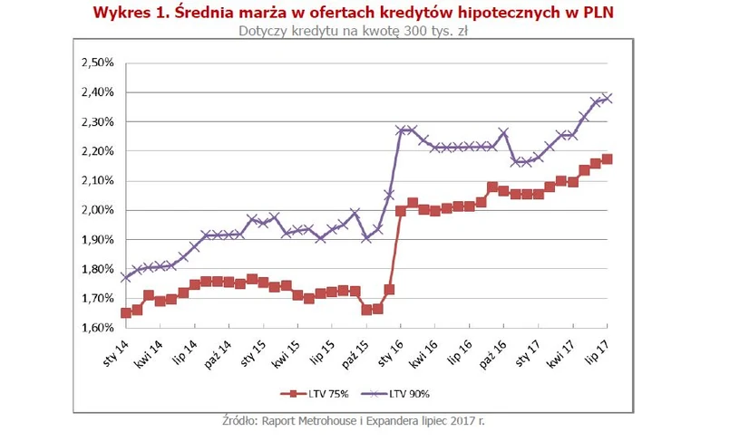 Z jednej strony mogą poprawić swoje zyski, które podgryzają m.in. podatek bankowy czy składki na BFG. Z drugiej mogą w ten sposób nieco hamować dynamicznie rosnący popyt na kredyty mieszkaniowe. Dobra sytuacja na rynku pracy, w gospodarce i ogólny optymizm sprawiają, że Polacy coraz chętniej decydują się za zakup lub budowę nieruchomości na kredyt.