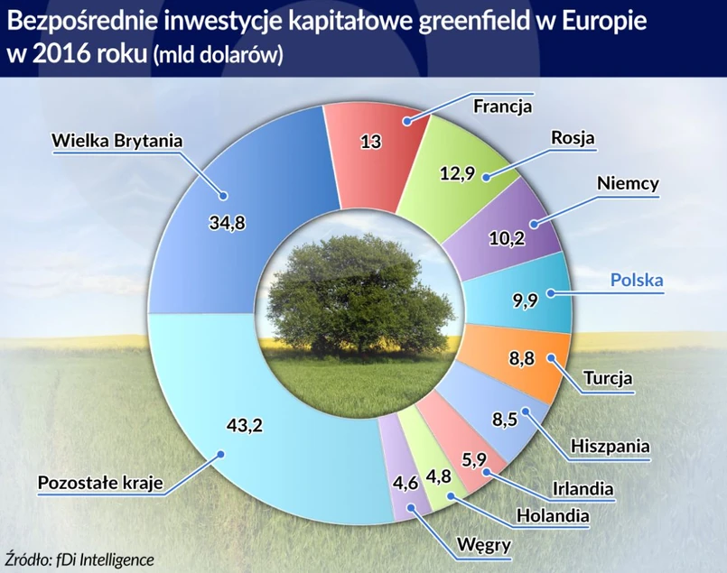 Inwestycje greenfield są najbardziej korzystne z punktu widzenia pozyskiwania stabilnego kapitału. Ostatni raport fDi Intelligence podaje, że Polska z liczbą 272 projektów zadeklarowanych w 2016 roku była w Europie na piątym miejscu. Nastąpił wzrost projektów w stosunku do poprzedniego roku aż o 36 proc. Pod względem wartości zadeklarowanych inwestycji kapitałowych – było to 9,9 mld dolarów – Polska zajmowała piąte miejsce za Wielką Brytanią, Francją, Rosją i Niemcami. Na świecie rynek inwestycji greenfield wzrósł o ponad 6 proc., do 776,2 mld dolarów.