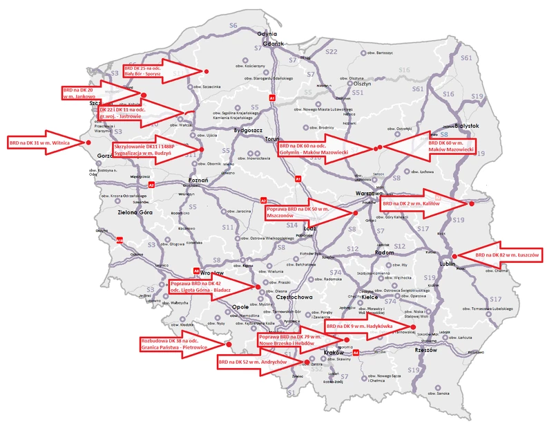 Są to prace związane z rozbudową istniejących odcinków dróg krajowych oraz dostosowaniem ich nośności do ruchu ciężkiego o nacisku 11,5 t/oś. Celem realizacji inwestycji jest także poprawa bezpieczeństwa uczestników ruchu drogowego poprzez przebudowę skrzyżowań, budowę rond w miejsce skrzyżowań oraz budowę sygnalizacji świetlnej, chodników, ścieżek rowerowych i zatok autobusowych.