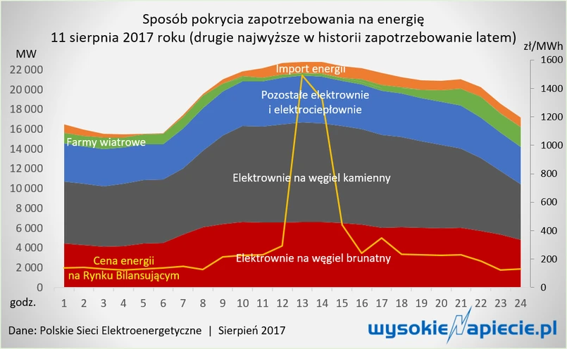 Tego lata mocy w systemie nie brakowało. Większe możliwości importu, mniejsza liczba remontów w elektrowniach węglowych i nieznacznie więcej mocy w energetyce odnawialnej sprawiły, że spaliśmy spokojnie. Aż do piątku. Fala upałów sprawiła, że zapotrzebowanie odbiorców podskoczyło blisko historycznego rekordu z początku sierpnia i wyniosło 22990 MW.