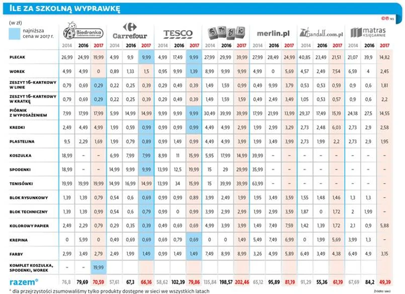 Andrzej Faliński, niezależny ekspert ds. handlu, zauważa, że najtaniej za wyprawkę zapłacimy, jeśli zdecydujemy się ją skompletować, odwiedzając przynajmniej dwa, trzy markety. Każdy postawił bowiem na inny asortyment, który oferuje w najniższej cenie.
