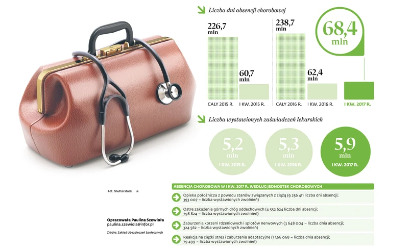 W I kw. br. było to ogółem ponad 68 mln dni, rok wcześniej prawie 6 mln mniej. ZUS podkreśla, że tendencja wzrostowa utrzymuje się od wielu lat, a przepisy dotyczące świadczeń w związku z chorobą nie zmieniły się np. na korzyść chorego. Przyczyna jest zatem inna. Jaka? W ocenie dr. Andrzeja Kużawczyka z Okręgowej Izby Lekarskiej w Warszawie trudno wskazać na jeden powód takiego stanu. Jak sam jednak podkreśla, duże znaczenie może mieć w tym wypadku tempo życia i stres. Potwierdzają to zresztą statystyki