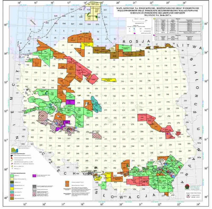 Według zestawienia resortu, Polskie Górnictwo Naftowe i Gazownictwo (PGNiG) ma 1 koncesję, Orlen Upstream - 4, Lotos Petrobaltic - 4, Baltic Oil & Gas (dawniej Talisman Energy Polska) - 2, Rawicz Energy - 1, ShaleTech Energy - 7, oraz Strzelecki Energia - 1.