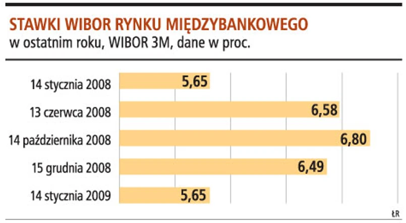 - Poprawę zobaczymy, jeśli obecną sytuację porównamy z październikiem czy listopadem ubiegłego roku, gdy ten rynek w ogóle nie działał i stawki rynku międzybankowego były bardzo wysokie - dodaje Przemysław Kwiecień z X-Trade Brokers. W tej chwili WIBOR, czyli wskaźnik pokazujący oprocentowanie, po jakim banki udzielą pożyczek innym bankom, spadł do 5,65 proc., czyli w ostatnich trzech miesiącach o 1 pkt proc.