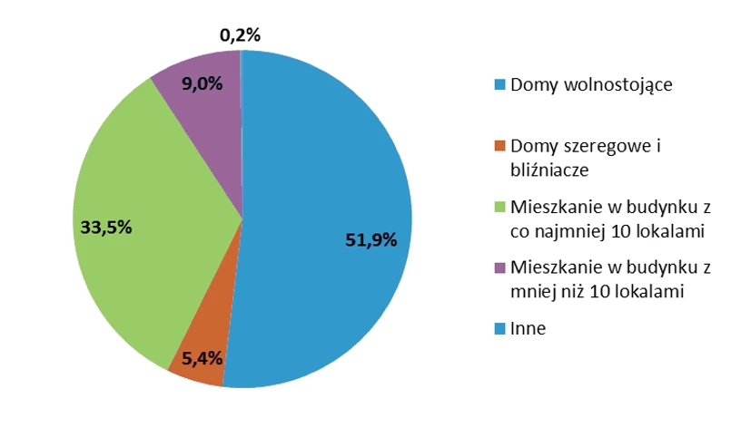 Łączny odsetek osób mieszkających w domach w Polsce (57,4 proc.) jest podobny jak w całej Unii (57,3 proc.), acz zróżnicowanie jest spore. W domach mieszka 34 proc. Hiszpanów i 92,5 proc. Irlandczyków.