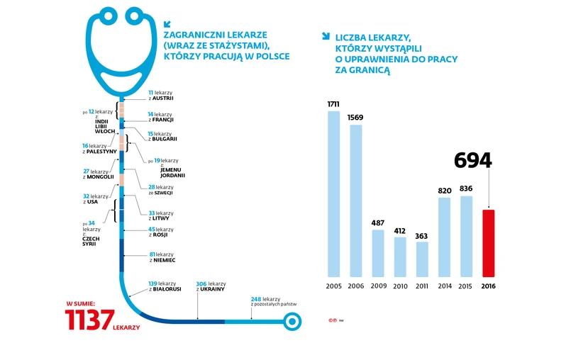 Obecnie lekarz spoza Unii, zanim zacznie pracę w Polsce, najpierw musi nostryfikować dyplom i uzupełnić różnice w wykształceniu, zdać egzamin z polskiego (medycznego) i uprawniający do wykonywania zawodu. – Z powodu stopnia trudności lekarze niechętnie się tego podejmują – mówi prof. Lech Chyczewski z Uniwersytetu Medycznego w Białymstoku. Według najnowszych danych Naczelnej Izby Lekarskiej w Polsce leczy w sumie 1137 obcokrajowców z 98 państw – przede wszystkim z Ukrainy (306 lekarzy), Białorusi (139) i Niemiec (81).