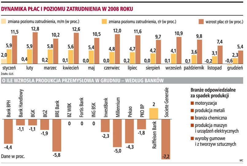 - Jeśli ten spadek dynamiki uwzględnił jakoś przesunięcie wypłat, to niewykluczone, że w styczniu możemy zobaczyć przejściowo wzrost dynamiki do około 7 proc. Nie ma jednak wątpliwości, że w 2009 roku płace nie będą rosły w takim tempie - dodaje Szczurek.