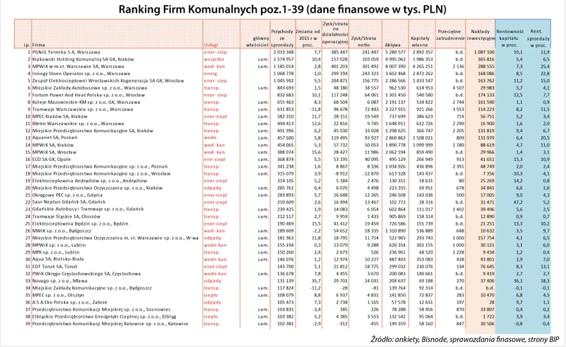 W raporcie Centrum Idei Gospodarczo-Ekonomicznych (CIGE) uwzględniono 230 spółek prawa handlowego zajmujących się usługami komunalnymi. To firmy zajmujące się transportem lokalnym, dostawami energii i prądu, zaopatrzeniem w wodę, kanalizacją, usuwaniem odpadów. W rankingu nie wzięto pod uwagę zakładów samorządowych ani jednostek budżetowych.