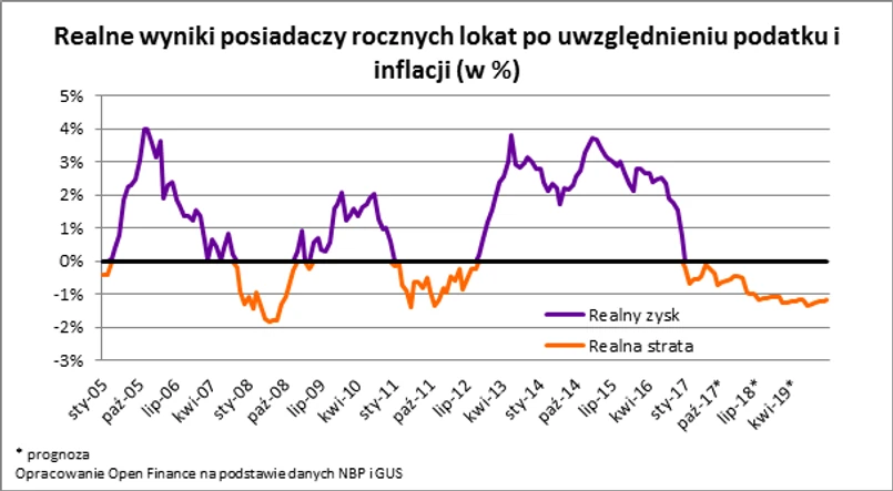 Listopadowa projekcja inflacji przygotowana przez NBP nie napawa optymizmem. Inflacja przyspieszy i już w trakcie 2018 roku dobrnie do celu na poziomie 2,5%. Są to złe wieści dla posiadaczy lokat, bo Rada Polityki Pieniężnej wcale nie pali się do podnoszenia stóp procentowych. Efekt? Może się okazać, że lokaty wciąż będą oprocentowane rachitycznie, a inflacja coraz mocniej zacznie drenować oszczędności Polaków skłaniając ich do coraz bardziej ryzykownych inwestycji.