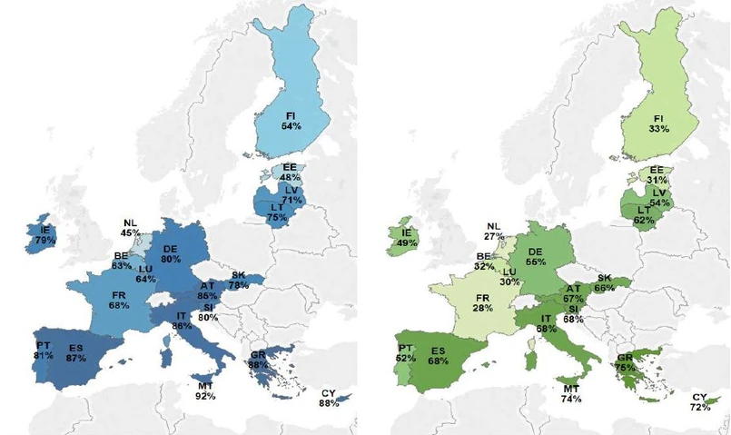 Patrząc na poszczególne kraje, tylko na Cyprze większość konsumentów woli płacić gotówką, jeśli ma wybór. Duży odsetek takich osób jest też w Austrii i na Malcie (po 48 proc.), a także w Irlandii (46 proc.). Najmniej konsumentów wybrałoby gotówkę we Francji (17 proc.), Belgii (18 proc.) i Estonii (19 proc.).