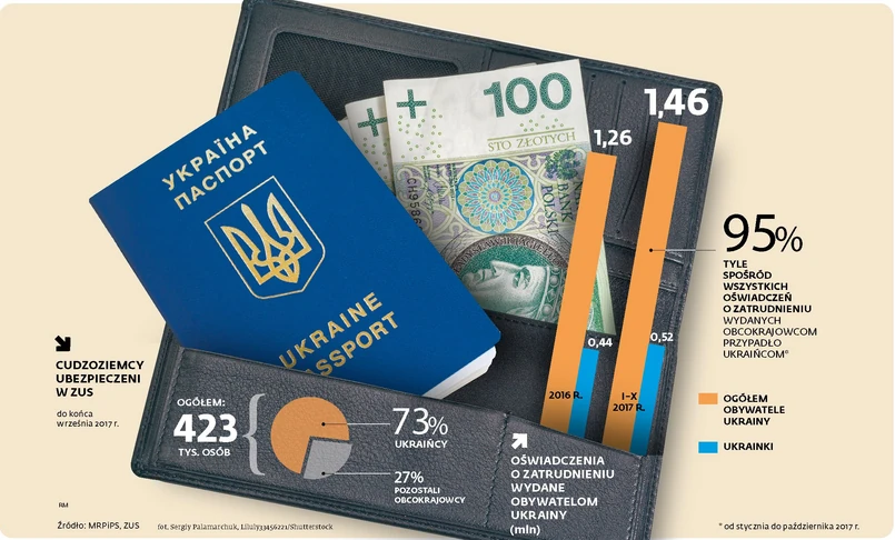 Sama ich liczba nie oddaje skali imigracji zarobkowej w naszym kraju. Jak wynika z szacunków resortu pracy i demografów, z zarejestrowanych oświadczeń wykorzystywanych jest ok. 60 proc. Z drugiej strony należy doliczyć osoby, które otrzymują zezwolenie na pracę. Tu również jest trend wzrostowy. Do połowy roku wydano ich 108 tys. W całym zeszłym roku było ich 121 tys. Także w tej kategorii przeważają Ukraińcy. Przypada na nich ponad 80 proc. zezwoleń.