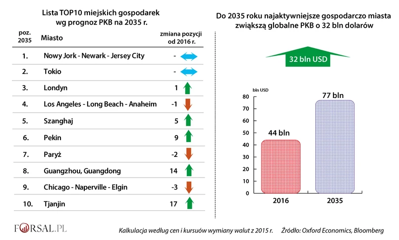 780 najbardziej aktywnych gospodarczo miast na świecie, które już teraz wytwarzają prawie 60 procent globalnej produkcji, w ciągu najbliższych kilku dekad przyczyni się do zwiększenia światowej populacji o prawie pół miliarda ludzi i zwiększy globalne PKB o 32 bln dolarów – szacuje w opracowaniu Mark Britton, ekonomista Oxford Economics.