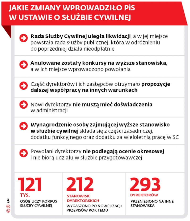 Opozycja jednak ma na ten temat inne zdanie. – PiS już usunął tych, których chciał się pozbyć. Przywrócenie konkursów nic go więc nie kosztuje. Z góry wiadomo, że ewentualny nabór wygrają te osoby, które dziś piastują stanowiska kierownicze z powołania – uważa Marta Golbik z PO. I wyraża nadzieję, że UE nie zachwyci się tym jednym gestem w postaci odkręcenia reformy służby cywilnej.