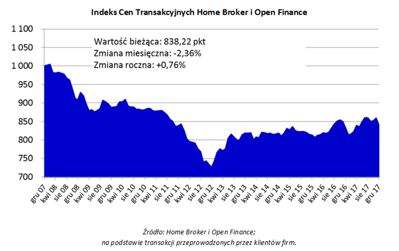 Obliczany od końca 2007 r. Indeks Cen Transakcyjnych powstaje na bazie transakcji dokonanych przez klientów Home Brokera i Open Finance, jest więc realnym odbiciem tego, ile kosztują mieszkania, którymi handluje się na rynku, a nie życzeń sprzedających, które widać w cenach ofertowych.