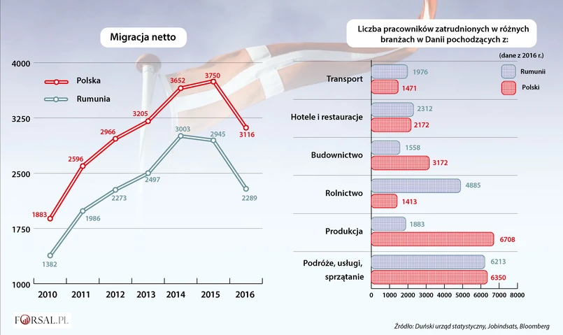 Centroprawicowy rząd premiera Larsa Lokke Rasmussena zaostrza zasady imigracyjne. Pomimo to, zagraniczni pracownicy nadal przybywają do Danii. Obecnie prawie jedną dziesiątą siły roboczej tego skandynawskiego kraju stanowią właśnie obcokrajowcy. Jak szacuje Nordea Bank AB, największy kredytodawca regionu, zagraniczni pracownicy w większości pochodzą z krajów Europy Wschodniej. W tej grupie bardzo silną reprezentację ma Polska i Rumunia.