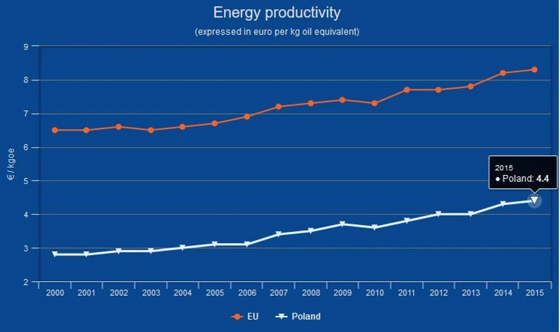 1. Wydajność energetyczna (wyrażona w euro na ekwiwalent ropy naftowej);