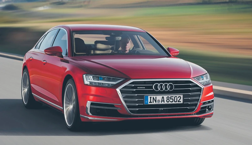 A8 ma łącznie sześć ekranów ciekłokrystalicznych, spośród których pięć to de facto tablety. Jeden z nich potrafi imitować wciśnięcia prawdziwych przycisków – lekko się ugina i klika. Jeszcze bardziej niesamowite jest to, że możecie powiedzieć: „Chce mi się siku”, a nawigacja pokieruje was na najbliższy parking lub stację z toaletą. Albo „Jest mi zimno” i klimatyzacja ustawi żądaną temperaturę. Jest tu też trzeci poziom jazdy autonomicznej, co oznacza, że... producent bierze na siebie prawną odpowiedzialność za jakiekolwiek kolizje, do których ewentualnie doszłoby podczas prowadzenia auta przez komputer. Bo jest pewny, że coś takiego nigdy się nie zdarzy.
