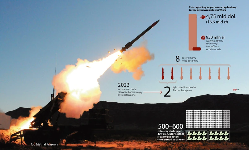 Dzięki temu kontraktowi mamy zdobyć zdolność do zestrzelenia pocisków, samolotów czy śmigłowców nieprzyjaciela na odległość kilkudziesięciu kilometrów. Choć warto mieć świadomość, że nawet zakup ośmiu baterii (tyle docelowo ma mieć Polska) sprawi, że do pewnego stopnia będą bezpieczne tylko wybrane fragmenty kraju.