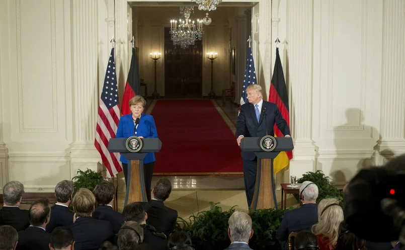Trump wezwał Niemcy do przeznaczania co najmniej 2 proc. PKB na obronność. Na konferencji prasowej z Merkel podkreślił, że Europejczycy muszą odpowiednio troszczyć się o swoje bezpieczeństwo.