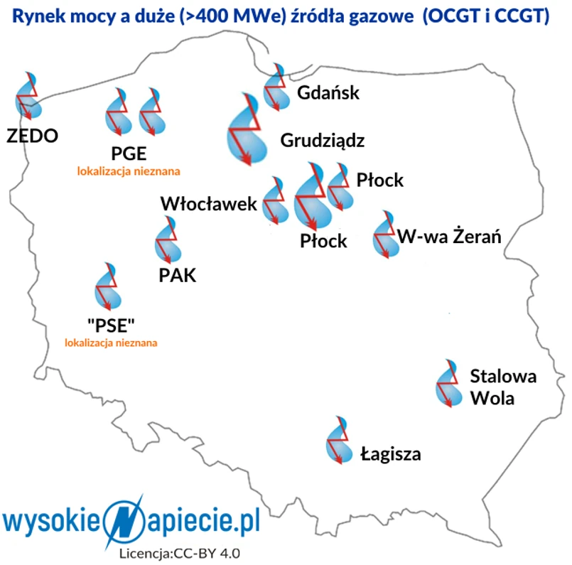 Bliższe dane na razie oficjalnie nie są znane, ale jak ustaliliśmy, w certyfikacji ogólnej pojawiło się sporo planowanych jednostek gazowych o sumarycznej mocy sięgającej nawet 7 GW (dziś jest ich w Polsce niewiele ponad 2 GW). W przypadku części z nich technologią może być tylko OCGT – czyli proste turbiny gazowe o otwartym cyklu, produkujące wyłącznie energię elektryczną i to „na zawołanie”. Są znacznie tańsze od kogeneracyjnych, a więc wysokosprawnych CCGT, ale widocznie skalkulowano, że dochody z rynku mocy będą wyższe od nierzadko kłopotliwej dodatkowej sprzedaży ciepła. W dodatku OCGT zgodnie z ustaleniami polskiego rządu z Komisją Europejską będzie benchmarkiem dla rynku mocy- koszt budowy elektrowni OCGT pomnożony przez 1,5 wyznaczy maksymalną cenę za megawat jaką będzie można dostać z rynku mocy.