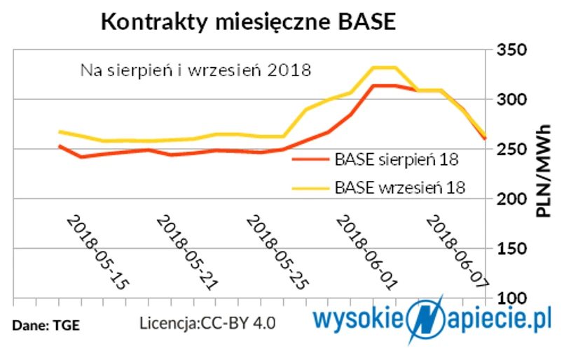 Trend spadkowy pojawił się około 1 czerwca, a od poniedziałku 4 czerwca kontrakty już wyraźnie potaniały. Po słowach prezesa URE trend spadkowy się utrzymał, czwartek 7 czerwca był kolejnym dniem z notowaniami niższymi niż dzień wcześniej. Nie mamy jednak pewności, czy regulator nie podzielił się swoimi wątpliwościami z rynkiem wcześniej, w jakiś bardziej dyskretny sposób.