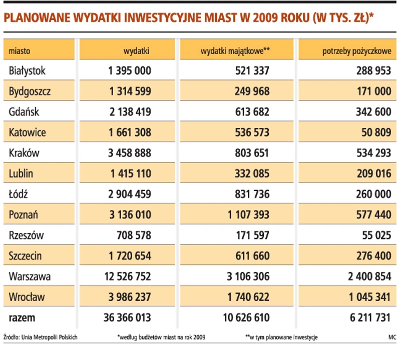 To olbrzymia kwota, jeśli weźmie się pod uwagę to, że łączne wydatki dwunastki planowane na ten rok wyniosą 36 mld zł. Oznacza, to że miasta muszą pożyczyć co szóstą złotówkę.