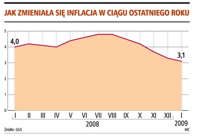 Ale taniejący złoty i jego potencjalny wpływ na ceny może stać się głównym argumentem dla przeciwników obniżek stóp procentowych. - Na skutek osłabienia złotego w lutym możemy zobaczyć lekki wzrost cen paliw. Kurs błyskawicznie wpływa na poziom cen - uważa Marcin Mazurek z BRE Banku.