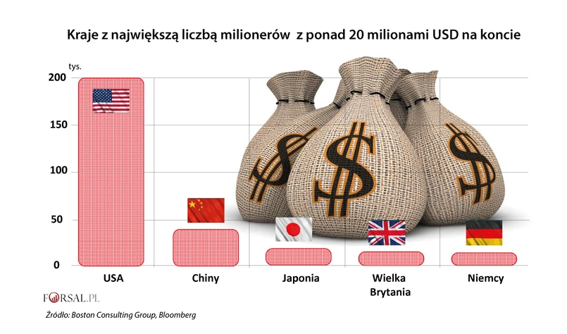 W ubiegłym roku wielkim zwycięzcą w wyścigu do zamożności okazały się Chiny, które obecnie zajmują drugie miejsce na świecie pod względem bogactwa finansowego. Jednak w liczbie milionerów palmę pierwszeństwa nadal dzierżą Stany Zjednoczone, ponieważ największej siły napędowej wzrostu w Państwie Środka nie stanowili milionerzy, tylko osoby z tak zwanego segmentu zamożnych, czyli te z majątkiem o wartości aktywów od 250 tys. do 1 miliona dol.