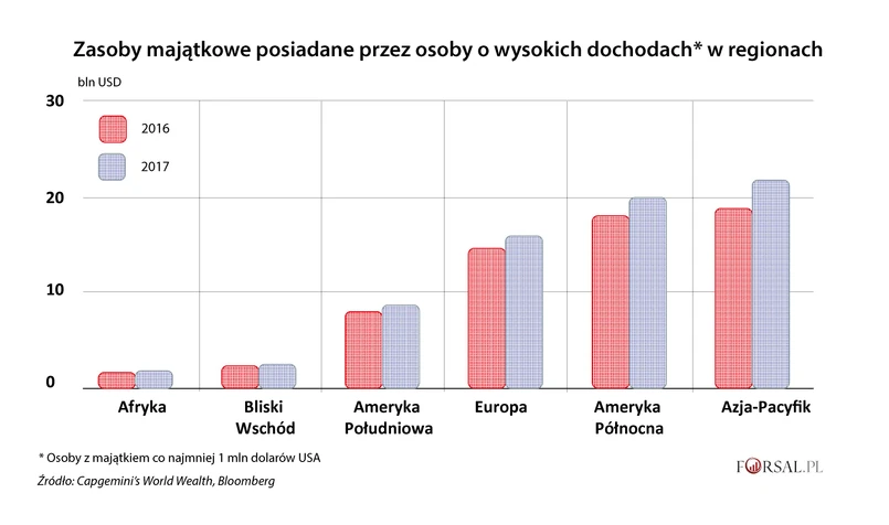 Zgodnie z raportem globalny majątek osób, które posiadają aktywa inwestycyjne o wartości co najmniej 1 miliona dol., do 2025 roku ma przekroczyć 100 bln dol.