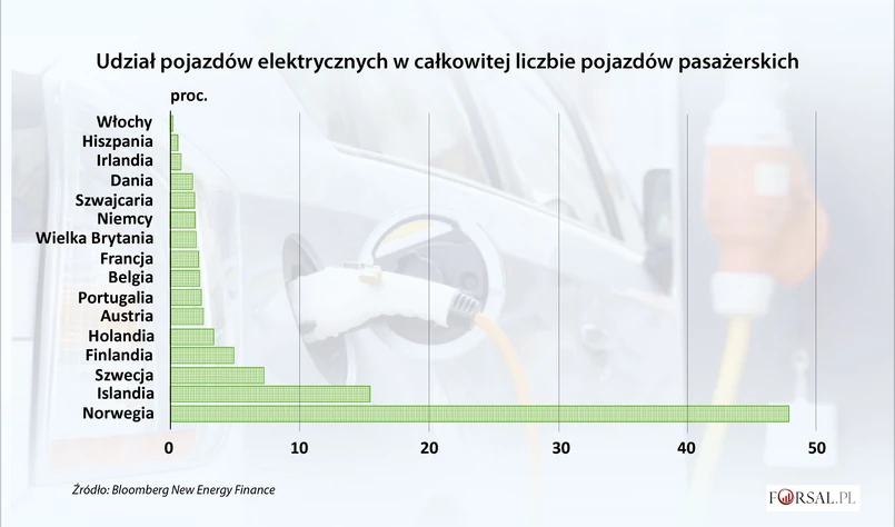 W Norwegii, lidera e-samochodów w Europie, zachęty obejmują wszystko, od ulg podatkowych, zwolnień od opłat drogowych po bezpłatny przejazd promem. Norwegowie mogą spodziewać się około 9 tys. euro (10,4 tys. USD) dotacji na elektryczną wersję Volkswagen AG's Golf lub 7 tys. euro na VW Up. We Francji, która może potroić sprzedaż swoich samochodów elektrycznych do około 150 tys. w maju 2022 r., - zgodnie z danymi Bloomberg New Energy Finance (BNEF) - dotacje do zakupu samochodu elektrycznego sięgają około 10 tys. euro.