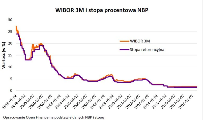 Pod koniec 2012 roku Rada Polityki Pieniężnej zaczęła bowiem obniżać stopy procentowe. Wraz z nimi maleć zaczęła stawka WIBOR, która jest składnikiem oprocentowania prawie wszystkich mieszkaniowych kredytów złotowych. Już pod koniec 2013 roku nasza hipotetyczna rodzina mogła się więc cieszyć ratą o około 20% niższą płacąc co miesiąc do banku mniej niż 1,6 tys. zł. To jednak nie był koniec dobrych wiadomości płynących z gmachu centrali Narodowego Banku Polskiego. Obradująca tam RPP miała jeszcze obniżyć koszt pieniądza – po raz ostatni zdecydowała się na taki ruch w marcu 2015 roku. Efekt był taki, że niedługo potem nasza hipotetyczna rodzina musiała oddawać do banku mniej niż 1,4 tys. zł miesięcznie, co oznaczało oszczędzanie kolejnych 200 złotych na pojedynczej racie. Od tego czasu niewiele się zmieniło. Stawka WIBOR 3M tylko delikatnie się zmieniała. Dziś rodzina spłacająca kredyt zaciągnięty ponad 6 lat temu musi co miesiąc oddawać po około 1375 zł miesięcznie – to o ponad 30% mniej niż wynosiła pierwsza rata.
