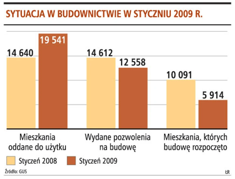Mimo że w styczniu oddano do użytku prawie 20 tys. nowych mieszkań, czyli o 1/3 więcej niż przed rokiem, to w całym roku liczba nowych mieszkań może spaść o ponad 20 proc. Na razie deweloperzy kończą inwestycje rozpoczęte rok i dwa lata temu, ale pod koniec roku liczba oddawanych mieszkań zacznie spadać.