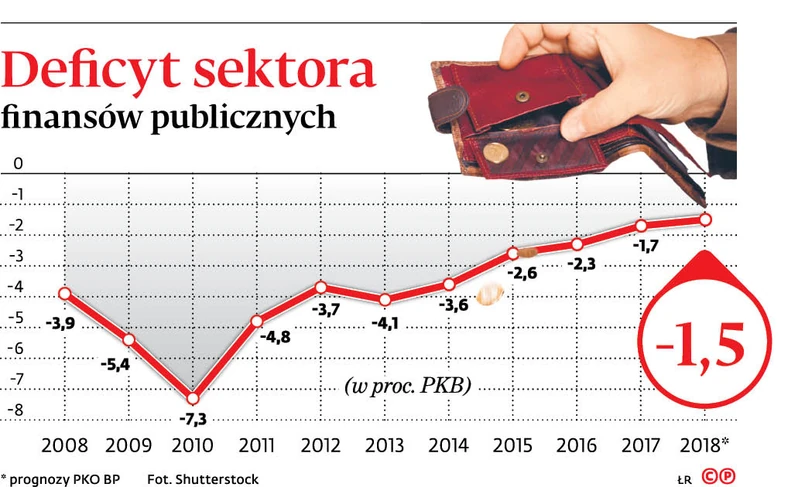 Ale prognozy PKO BP nie są jedynymi tak optymistycznymi oczekiwaniami zmniejszenia deficytu. Jeszcze większymi optymistami są eksperci Banku ING. Ich zdaniem będzie to 1,3 proc. PKB. Gdyby ta prognoza się sprawdziła, ustanowiony zostałby absolutny rekord, bo jak do tej pory najlepszy wynik udało się uzyskać w 2017 r. Deficyt wyniósł wtedy 1,7 proc. PKB.