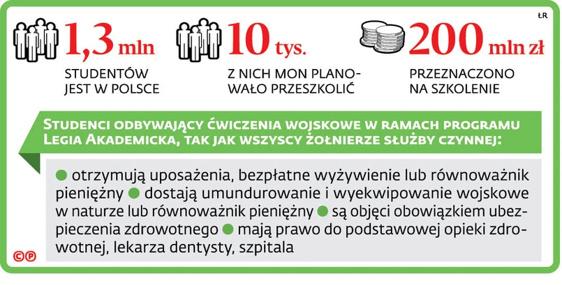 Wojsko nie zgadza się z tymi zarzutami. – Ostatecznie zdecydowaliśmy się zmniejszyć liczbę studentów. Nie mamy tylu ośrodków szkoleniowych, aby przeszkolić 10 tys. chętnych lub więcej – wyjaśnia Grzegorz Matyasik, odpowiedzialny w MON za program.