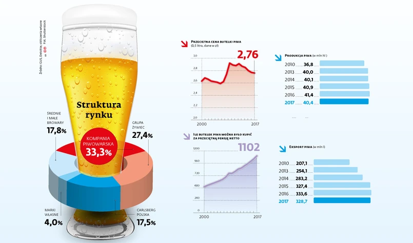 O klienta konkurują między sobą nie tylko browary, ale też sklepy. W 2017 r. Polacy najchętniej kupowali chmielowy napój w sklepach do 300 mkw. Jak wyliczyła firma badawcza Nielsen, za ich pośrednictwem do konsumentów trafiły dwa z trzech sprzedanych piw. Możliwość zarobienia dostrzegają również dyskonty, zwłaszcza te zlokalizowane blisko osiedli mieszkaniowych, które organizują liczne promocje. Piotr Szajner z IERiGŻ podkreśla, że ceny piwa trzymane są na uwięzi również z powodu importu. Ten, jak wynika z danych GUS, stale rośnie.