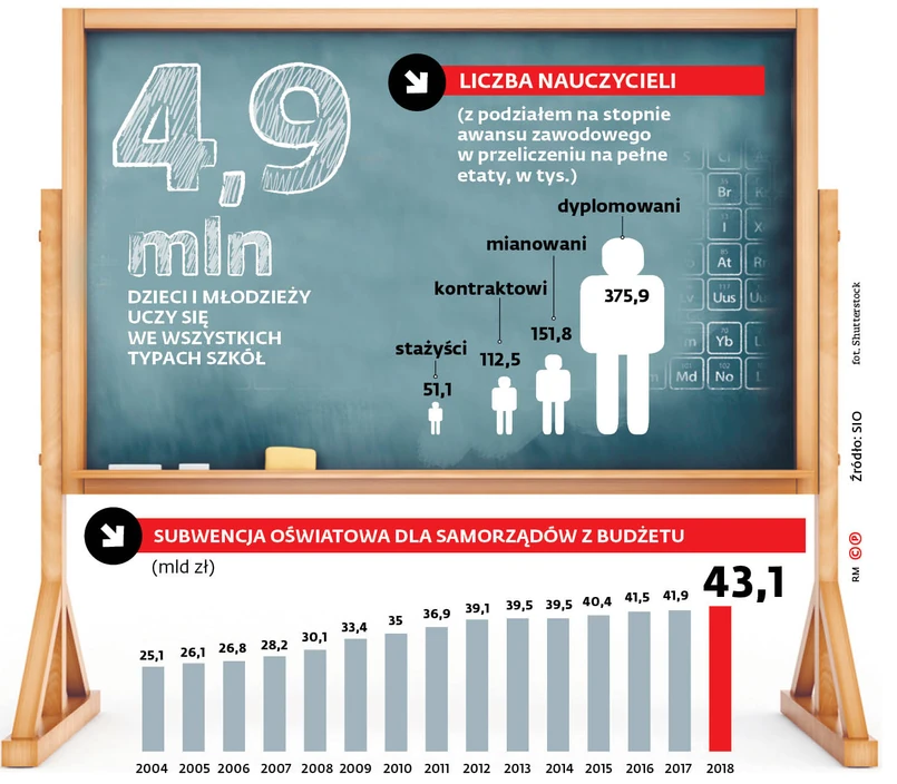 Remonty, tworzenie nowych pracowni, wydatki związane z reorganizacją będącą skutkiem wygaszania gimnazjów – z sondy DGP wynika, że w ostatnich trzech latach gminy coraz większą część swoich budżetów przeznaczają na oświatę. Na przykład od września do szkół podstawowych po latach wrócą ósme klasy (w poprzednim roku były tylko siódme), więc samorządy muszą zadbać o dodatkowe pomieszczenia w placówkach. Choć subwencja oświatowa co roku rośnie, samorządy uważają, że zbyt wolno i niedostatecznie.